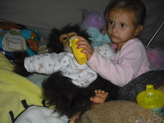 We went on an overnight camping trip this weekend to King's River which is about 25 miles past palmer/wasilla area. It was the kids second ever overnight camping trip. Their first was over 2 years ago and Hailey was too young to even remember. The kids had a blast. It was our first time as a family using our pop-up camper. Justin had used it once before with a few friends. The kids were very excited to get to sleep overnight in the camper. Hailey had her strawberry shortcake sleeping bag and Daniel had his spongebob sleeping bag. They even brought their pillow from home and Daniel had to bring his monkey fur real pet. The kids thought it was so neat to be outside and in the camper sleeping and eating. They actually had no tv for 26 hours and entertained themselves by painting and playing board games in the camper. Our campsite was right by a creek which had fresh glacier water flowing. Zack came along as well and enjoyed drinking the fresh cold glacier water right out of the creek. Our friends Wayne and April and their 3 kids were also camping with us but they roughed it and stayed in tents. The kids both stayed up late Saturday night and had their first ever smores. It was a little cold through the night. The temperature went down to 35 degrees but we all snuggled up and did fine. All in all we all had a great time and it was a wonderful weekend